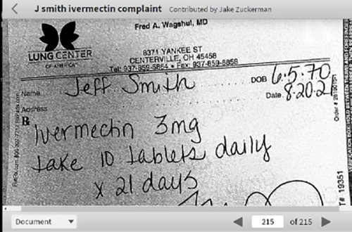 In July, Jeffrey had been admitted to West Chester Hospital for COVID-19 and almost immediately was admitted to ICU. On August 1, he was sedated and placed on a ventilator, where he apparently remains. Around August 19, Ms. Smith sought outside medical advice “… regarding her husband’s medical condition and using Ivermectin,” from Ivermectin-advocate Dr. Fred Wagshul. (For med-mal purists, it might be argued that Wagshul wasn’t even her husband’s doctor, but rather her medical advisor).