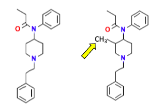 Figure 1. Fentanyl (L) and Mefentanyl (R) differ by only one methyl group (arrow)