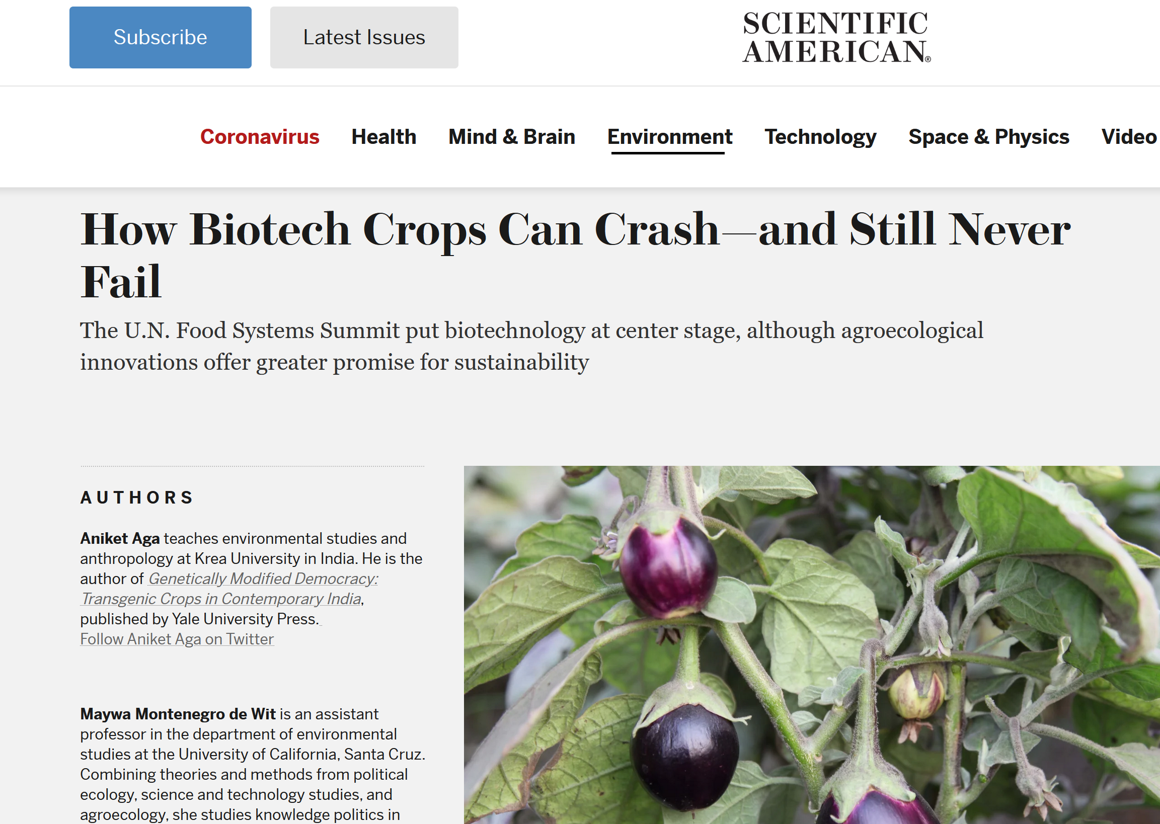 The story was a critique of the UN Food Systems Summit, which, the authors complained, “put biotechnology at center stage, although agroecological innovations offer greater promise for sustainability.” The article is little more than a rehash of bad arguments we recently confronted in GMOs a Tool of Colonialism? Debunking a Popular 'Social Justice' Myth. [1] But given SciAm's status in science media and the importance of biotechnology to food production, we need to confront this tomfoolery as often as it appears. SciAm in quotes, followed by my commentary.