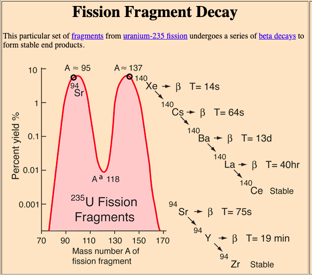 Some of the radioisotopes given off when U-235 explodes. Source: HyperPhysics