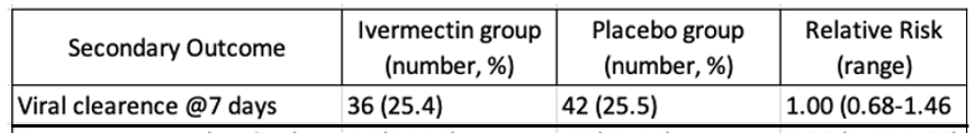 Figure 1. Only 25% of the participants cleared the virus after 7 days in both the ivermectin and placebo groups.
