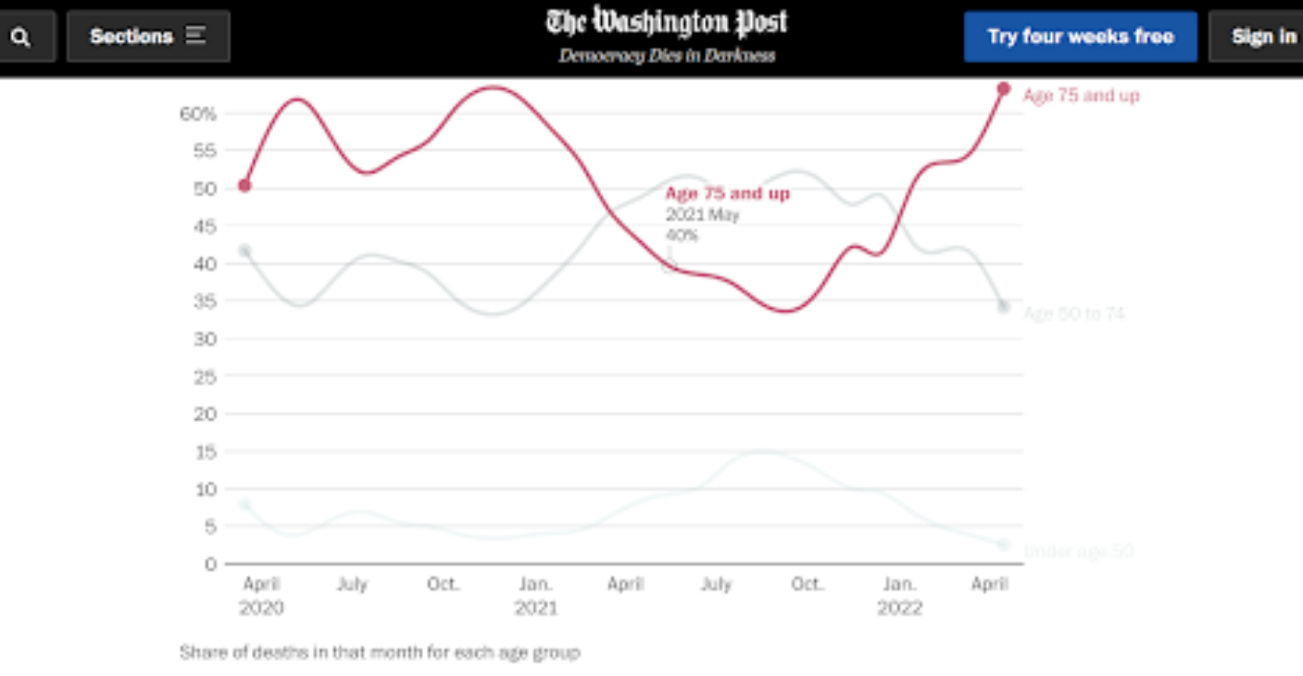 ● “Nearly two-thirds of the people who died in the omicron surge were 75 and older, according to a Post analysis,” and