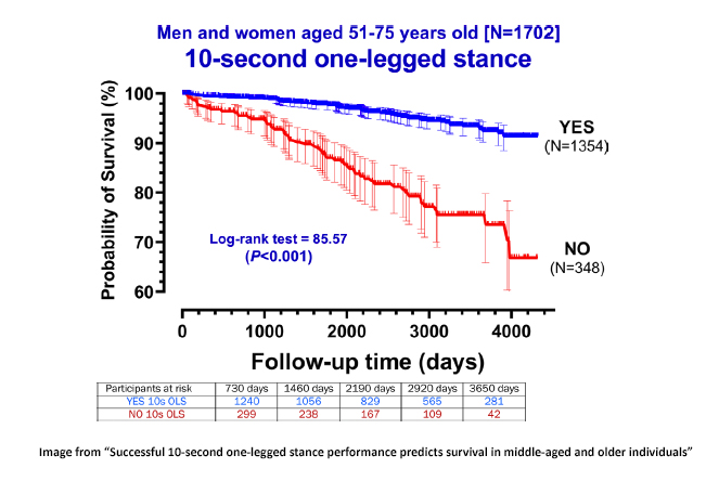 Source: Successful 10-second one-legged stance performance predicts survival in middle-aged and older individuals British Journal of Sports Medicine DOI: 10.1136/ bjsports-2021-105360