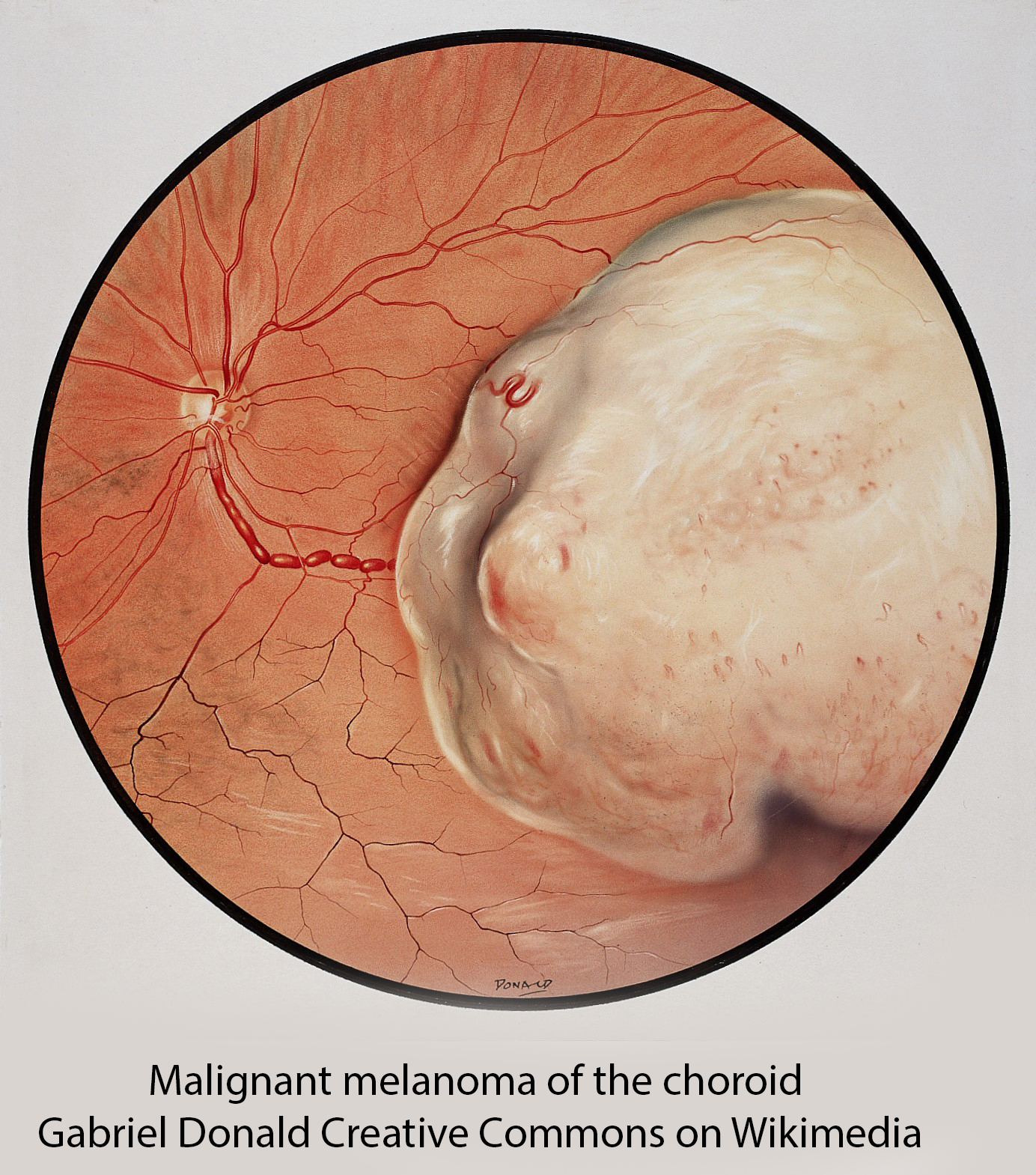 Ocular melanoma is a form of cancer that begins, most commonly, in the uveal layer of the eye that forms the capsule of the eye just below the sclera, or white portion. The choroid is the largest portion of the uveal layer, lying just below the retina, where most ocular melanomas arise. While they share the name melanoma with