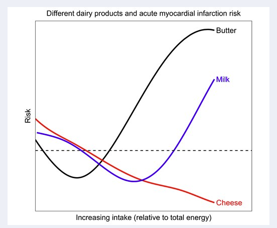 Cheese, on the other hand, appears to be cardioprotective. The more you eat, the more your risk of secondary heart injury decreases. Of course, that risk reduction is based upon the cohort studied - cheese is beneficial if, in fact, you are a Norwegian male of about age 62 and possibly smoke.