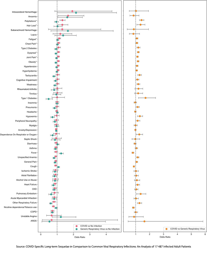 Source: COVID-Specific Long-term Sequelae in Comparison to Common Viral Respiratory Infections: An Analysis of 17 487 Infected Adult Patients Open Forum Infectious Disease DOI: 0.1093/ofid/ofac683