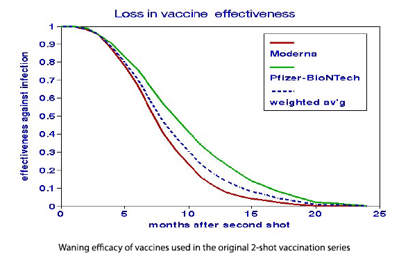 We also conclude that the long-term persistence of an immune response is just as important as the degree of short-term immunization and that short-term cohort studies of effectiveness may have been optimistic. Given the difficulty in forecasting vaccine persistence, public health would be better served by promoting booster programs sooner rather than later.