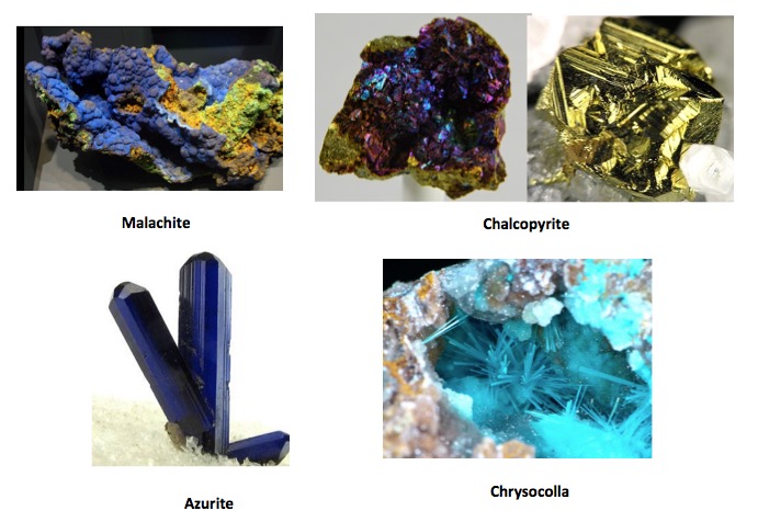 Selected copper-based minerals Source: Dark Matrix Minerals, Wikipedia Commons, Geology.com