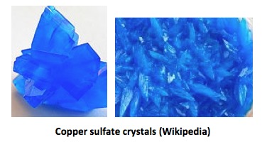 (Left, copper color changes with oxidation state, (World Metals LLC). Right, copper ammonia complex, Fine Art America)