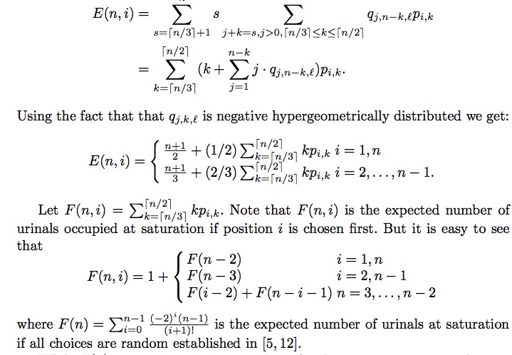 "In this paper, we consider a variety of models for men’s room behavior and attempt to develop strategies for maintaining privacy under each."