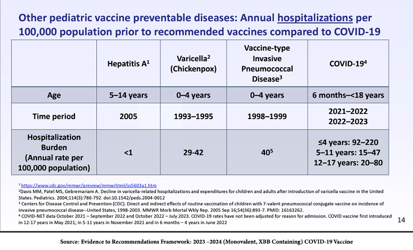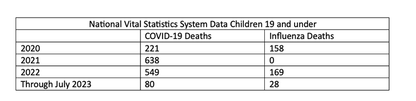Moreover, COVID-19 is not influenza; it results in greater hospitalizations than other diseases that can be treated with childhood vaccines and more pediatric deaths than influenza.
