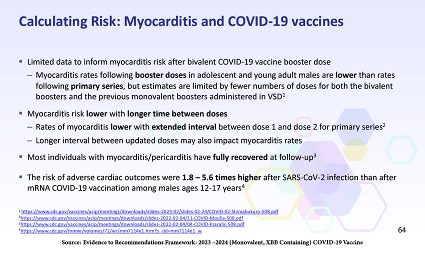 - For the males at risk for myocarditis, the risk seems to be lessening as we extend the interval between doses.
