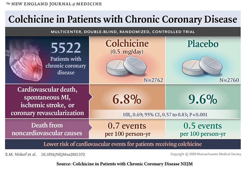 Source: Colchicine in Patients with Chronic Coronary Disease NEJM DOI: 10.1056/NEJMoa2021372