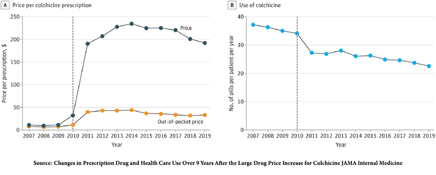 “The study’s findings suggest that the large and sharp increase in colchicine prices was associated with a sustained decrease in colchicine use, increased use of other medications for gout, and increased clinical encounters for gout, consistent with poorer disease control.”