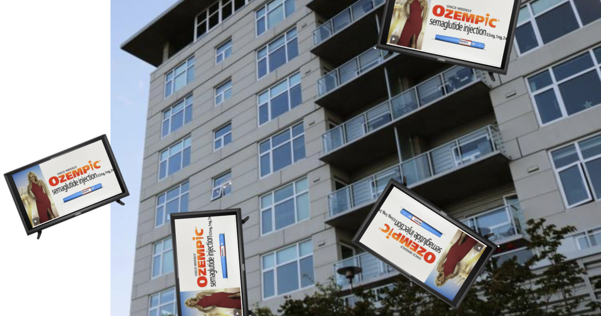 1st prize - Ozempic walks away with first place in the "Most Vomit-Worthy" TV ad contest. Those TVs ain't flying out of windows as a TikTok challenge.