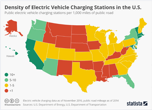 As you can see from the map, the mid-west is a charging station “desert.” For electrics to achieve their potential, there is much infrastructure to build. As the use of gasoline declines, so will the need for gas stations, and entirely removing those underground gas tanks will be a cost someone, meaning us, will have to absorb.