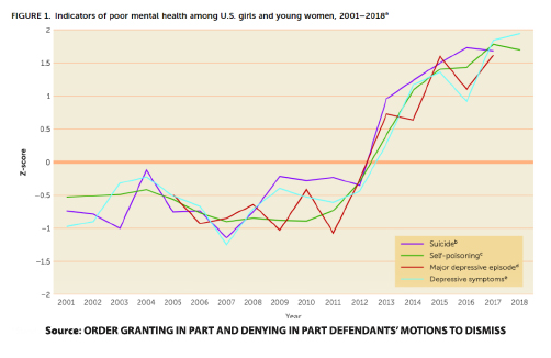 “Beginning with Instagram’s rise in popularity in 2012…the rates of suicides, self-poisonings, major depressive episodes, and depressive symptoms among girls and young women jumped demonstrably.”