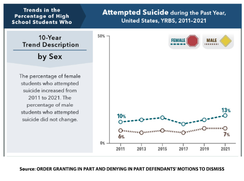 “Particularly concerning is the rise of suicidal ideation among girls …. According to the CDC’s Youth Risk Behavior Survey, in 2011, 19% of high school girls seriously considered attempting suicide. By 2021, that figure reached 30%.”