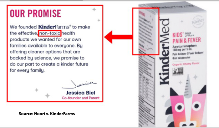 According to the complaint, the presence of a known toxin, acetaminophen, the generic name for Tylenol, makes the KinderFarm claim misleading. But it may be the greenwashing i.e., the elimination of the inactive ingredients (the removal of which KinderFarm touts as a customer benefit), that makes the product defective. In fact, two weeks after filing, the plaintiff's lawyers voluntarily withdrew the suit – with prejudice, meaning they won’t be refiling.