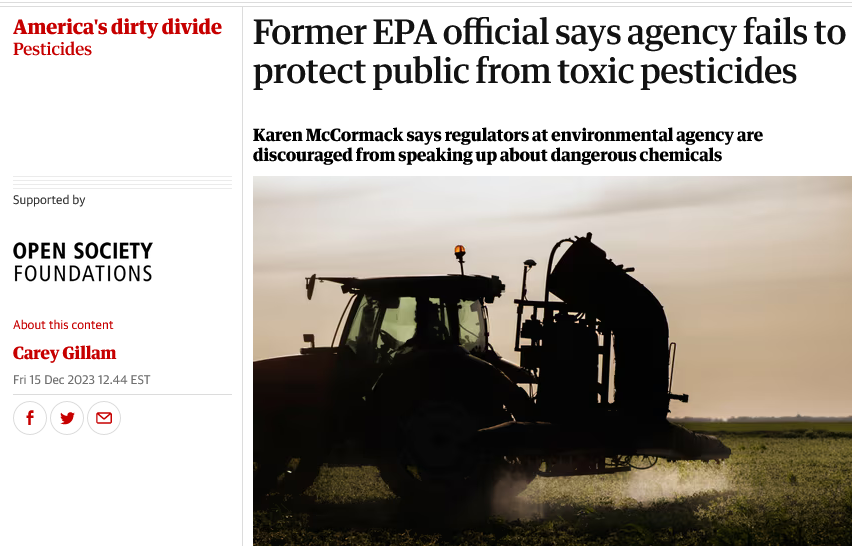 Karen McCormack, a retired Environmental Protection Agency (EPA) scientist who spent 40 years with the agency … described a culture of ‘regulatory capture’ at the EPA and said that colleagues who spoke out in favor of more stringent regulations on pesticides were often sidelined.’