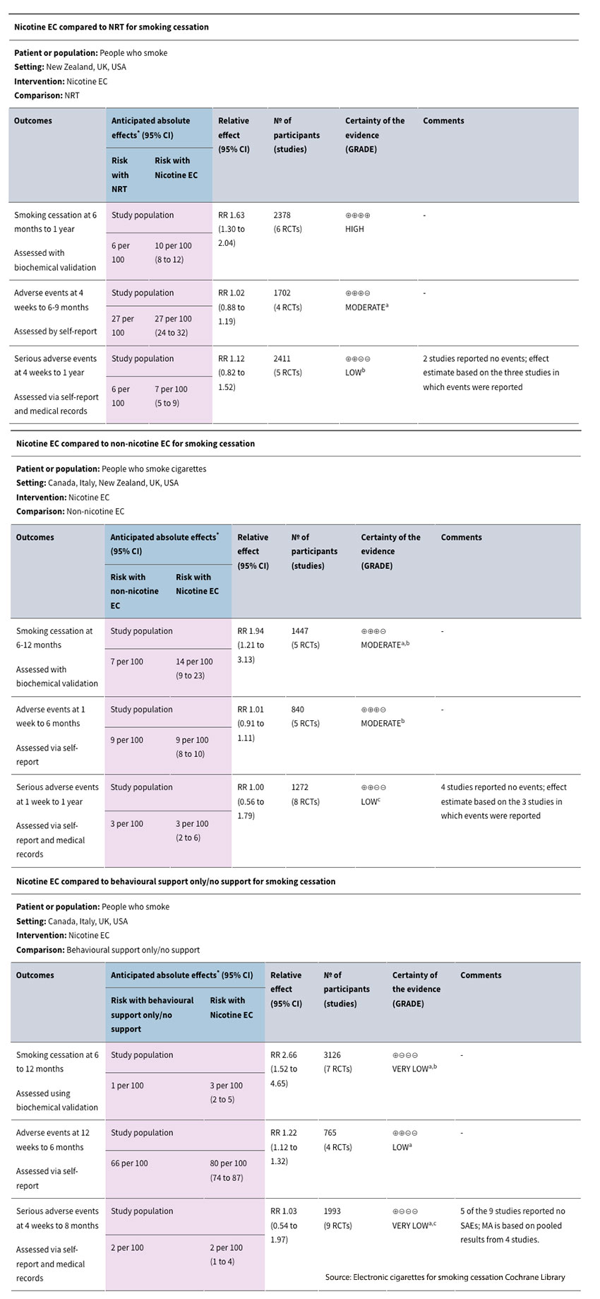 Source: Electronic cigarettes for smoking cessation Cochrane Library