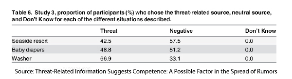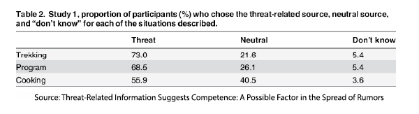 Source: Threat-Related Information Suggests Competence: A Possible Factor in the Spread of Rumors PLOS One DOI: 10.1371/journal.pone.0128421
