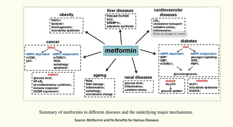 Metformin is a widely used medication in treating Type II diabetes. It is also somewhat of a “wonder” drug, treating a range of diseases, including some forms of cancer, obesity, cardiovascular disease, and “aging.”