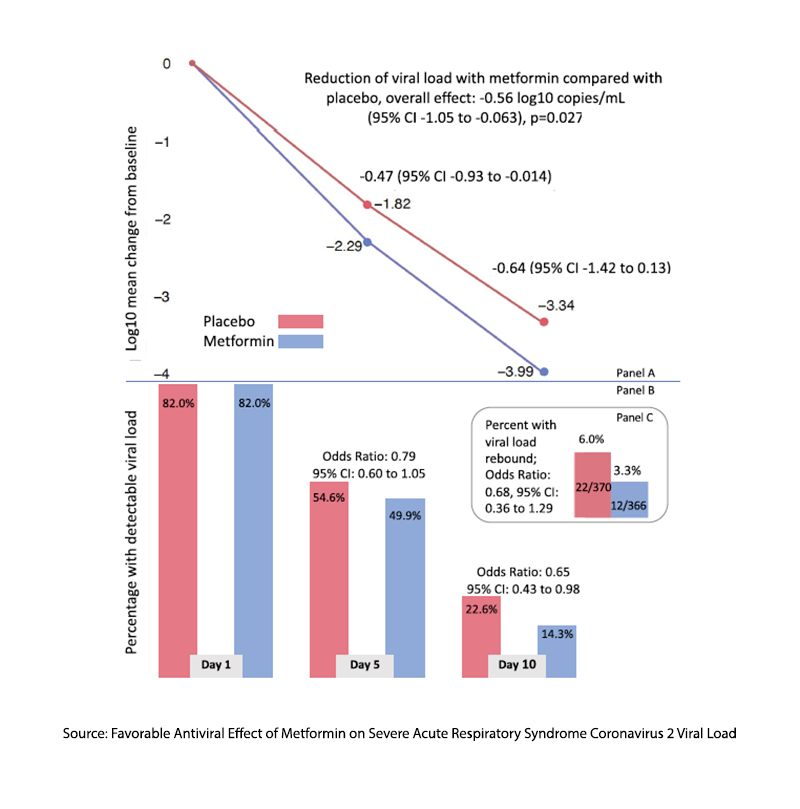 Source: Favorable Antiviral Effect of Metformin on Severe Acute Respiratory Syndrome Coronavirus 2 Viral Load in a Randomized, Placebo-Controlled Clinical Trial of Coronavirus Disease 2019 Clinical Infectious Disease DOI:10.1093/cid/ciae159