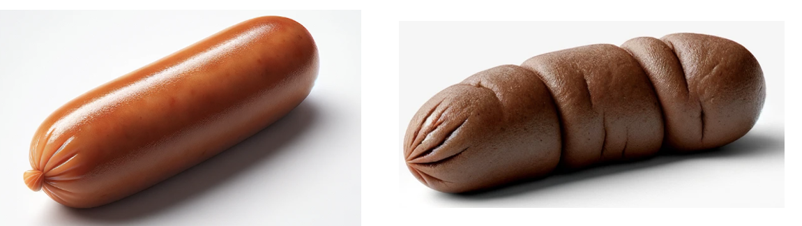 The genius of ChatGPT 4.0: "Draw me a sausage" resulted in the image on the left. "Make it look a little like a turd." (Right) How did I ever exist without this??