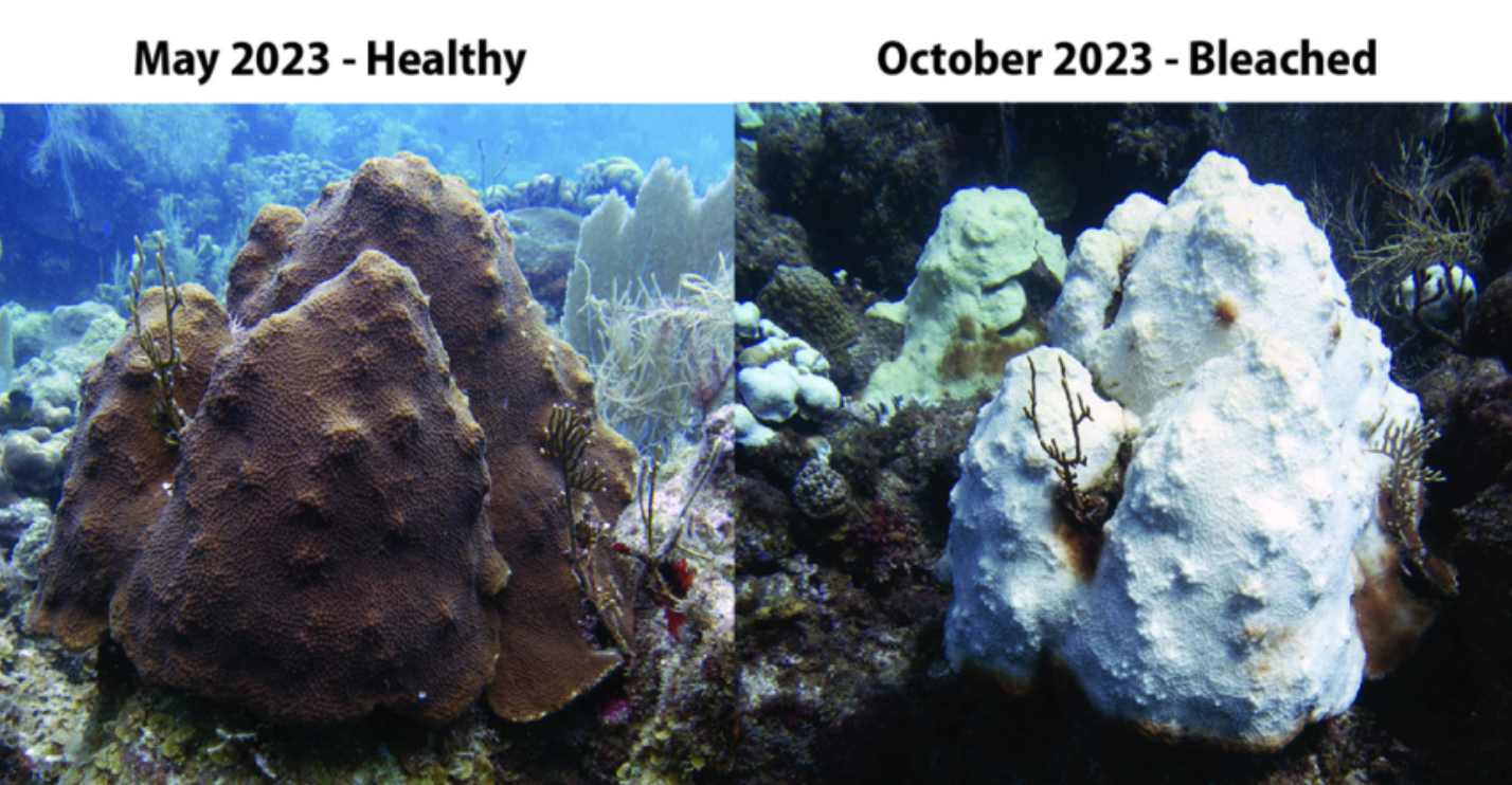 And it is not subtle. Below are photos of the same reef in St. Croix in May and again in October 2023.