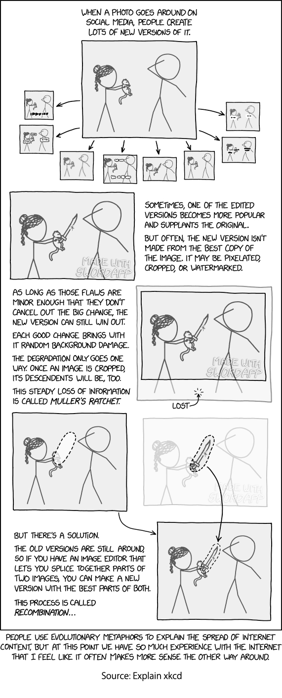 [2] Here is a graphic explanation of Mueller’s Ratchet.