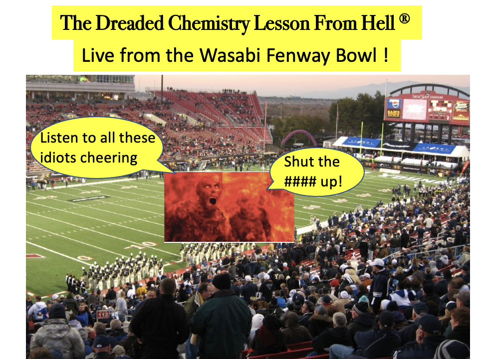 'Sugar alcohol' is an inherently confusing term. Are they sugars? Sort of because they're sweet (1). Are they alcohols? Yes, because they contain multiple hydroxyl (alcohol) groups. Both are partially correct, but it takes a bit of chemistry to explain the term properly. And who could possibly be better for this monumental task than our always-ornery friends Steve and Irving, long-time denizens of hell and (reluctantly) the hosts of The Dreaded Chemistry Lesson From Hell®? They finally got some long-overdue recognition and were featured at the halftime show of the prestigious 2023 Wasabi Fenway Bowl (2) !