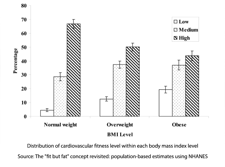 National Health and Nutrition Examination Survey (NHANES), utilizing VO2 and BMI, it turns out that the “individuals at risk” reflected small numbers of the overweight, 12.5%, and 20% for the obese. These researchers sound a more positive note,