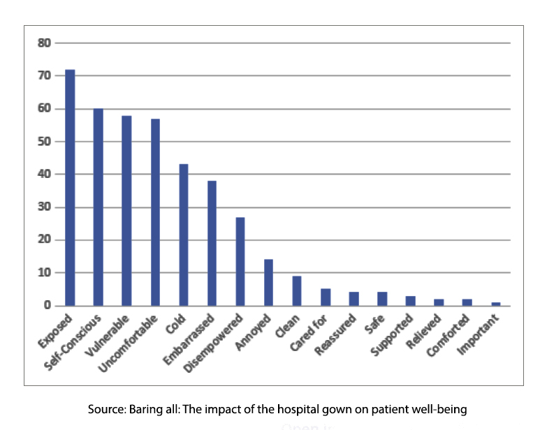 The researcher then sought to generalize those themes to the general population, “given that the majority of adults may have had to wear the hospital gown at some point in their life trajectory.” 928 participants completed an online survey on their experience with hospital gowns.