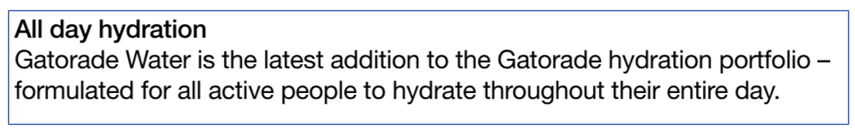 The Gatorade hydration portfolio??? What corporate idiot made that up? It's a f##### glass of water, not a multi-billion dollar mutual fund. And it's "formulated for active people." Does this mean it won't help a thirsty slob who sits around watching football all day?