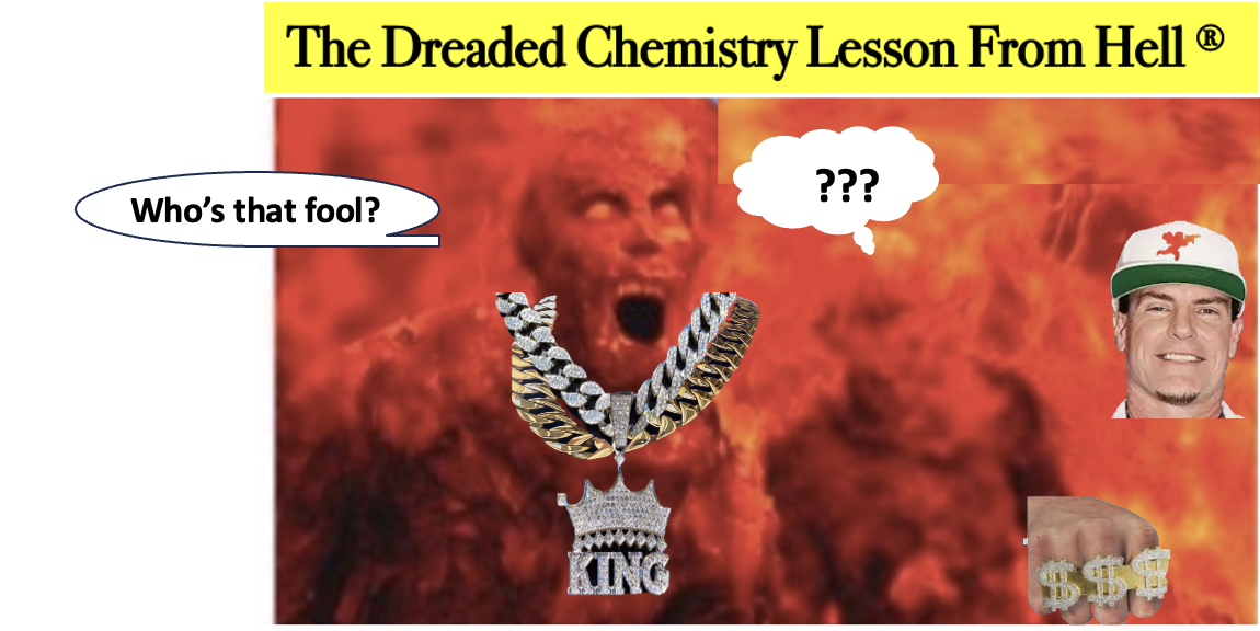 Recently, some nut wrote to me wondering why we haven't had a Dreaded Chemistry Lesson From Hell® recently. Well, here's the lesson, but my public relations skills are obviously not well honed. Otherwise, I would not refer to a long-time friend of ACSH (and a generous donor) as a nut. It would seem that my fundraising skills are no better. Fortunately, this fine gentleman has a sense of humor and will understand that random insults can escape at any given time, with or without the slightest provocation. Let's call this condition "Chemical Tourette's." He'll understand.