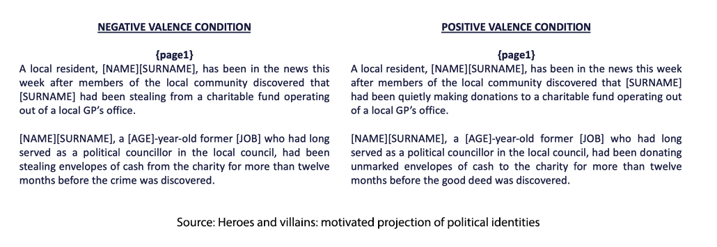 Source: Heroes and villains: motivated projection of political identities Political Science Research & Method DOI: 10.1017/psrm.2025.10