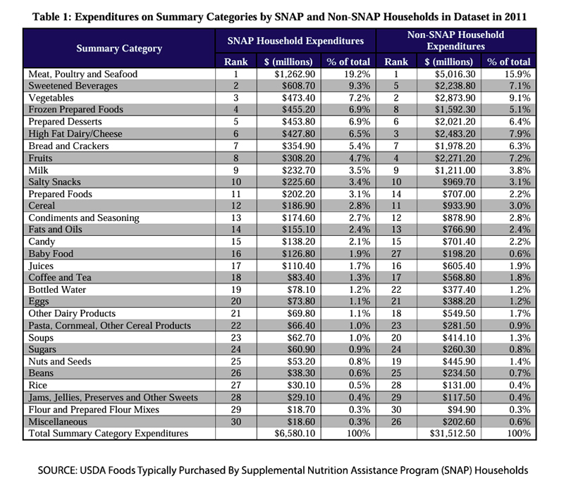 I’ve written previously about SNAP, the supplemental nutrition assistance program, and the less frequently discussed but critical Thrifty Food Plan (TFP), which is the basis for determining what foods are eligible for SNAP benefits. Much of the publicly voiced concerns are about SNAP beneficiaries' poor nutritional choices. As to what SNAP beneficiaries actually choose to purchase with those federal funds, consider this USDA study of typically purchased foods.