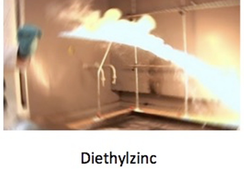 Then there’s dimethylzinc, where zinc is bonded to carbon. This compound is a colorless gas or volatile liquid, and it’s basically chemical road rage in a bottle. Expose it to air and it bursts into flames. Instantly.