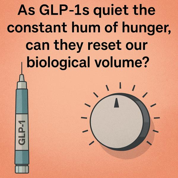 GLP-1s may reframe the diet debate from a moral test of willpower to a biological intervention disrupting the cycle of craving and consumption in an environment stacked against us. Like nicotine patches for smokers, these medications don’t eliminate desire—they quiet it, creating a window where healthier habits can take root. In a world increasingly engineered for overeating, GLP-1s offer a form of harm reduction, turning down the volume of food noise and aligning our biology, however briefly, with our intentions. Their true power may lie not in forcing weight loss but in giving people the space and time to make better choices and lasting change.
