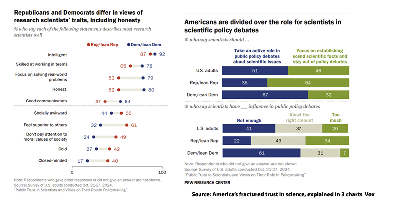 While Democrats may foreground evidence to justify regulatory action, Republicans may prioritize individual liberty, market autonomy, or regulatory restraint—values not invalidated by science but which shape how evidence is used. The researchers point out that when seeking information, Democrats and Republicans may use “science in roughly equal measure.” However, Republicans using hearings and committee meetings as performance may be more intent on messaging their political base. A base that is increasingly distrustful of scientific expertise.