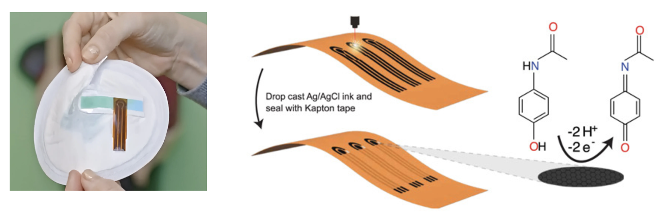 Here’s how it works: the pad contains a laser-induced graphene (LIG) sensor and microfluidic paper channels that slurp up leaked milk and analyze it electrochemically. Specifically, it uses square wave voltammetry (don't think for a second that you will understand this) to measure the oxidation peak of acetaminophen. (Translation, such as it is: it detects acetaminophen based on how easily it gives up electrons.)