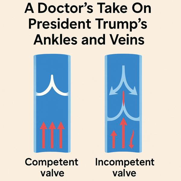 According to his press secretary, Karoline Leavitt, President Trump has chronic venous insufficiency in his legs, resulting in the swelling of his ankles that the closely observing press has noted. Two venous systems in our legs drain blood back to the heart: the superficial veins, which are commonly visible on the skin, and the deep veins that carry the bulk of the blood upwards in addition that are a series of “perforating” veins that connect the superficial and deep systems through small holes in the leg’s connective tissue, the fascia.