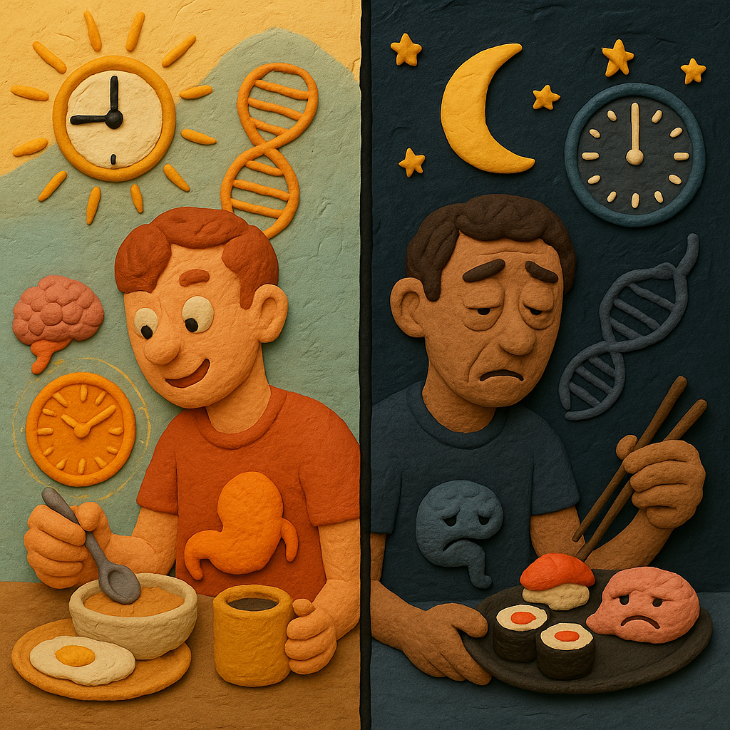 "[The] study revealed that the eating timing is associated with glucose homeostasis and shows significant genetic influences. … Shifting the main calorie intake to earlier circadian times may improve glucose metabolism, but the high heritability of meal timing components suggests that genetic predispositions could influence the feasibility and effectiveness of such interventions."
