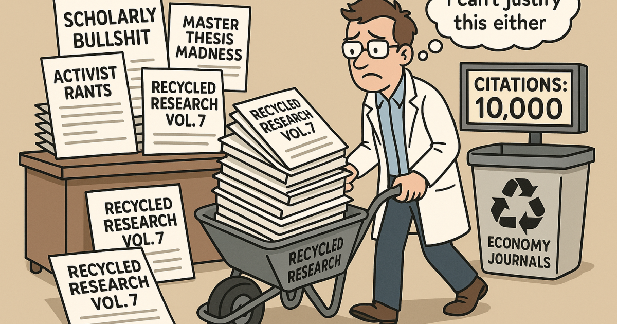 "Scholarly bullshit is defined as scholarship that is so pointless and unnecessary that even the scholar producing it cannot justify its existence,” Kirchherr defined in a provocative article published in 2022. “In essence, it is scholarship that does not contribute to the advancement of scientific knowledge… However, because of the current set-up of the academic system, the scholar feels obligated to pretend otherwise and to continue churning out this kind of work.”
