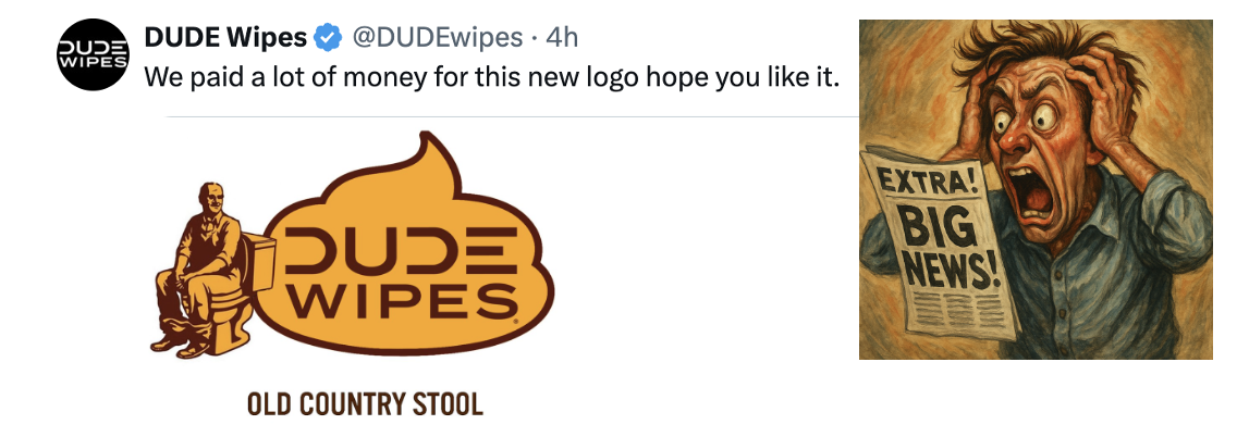 Dude Wipes, a brand that is as well-known, if not more so, than Coke or Chevrolet, just dropped a bomb (sorry) on us. More on this later.