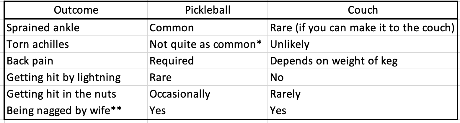 - Most Pickleball hospitalizations are for cardiac arrest (that's comforting, right?)