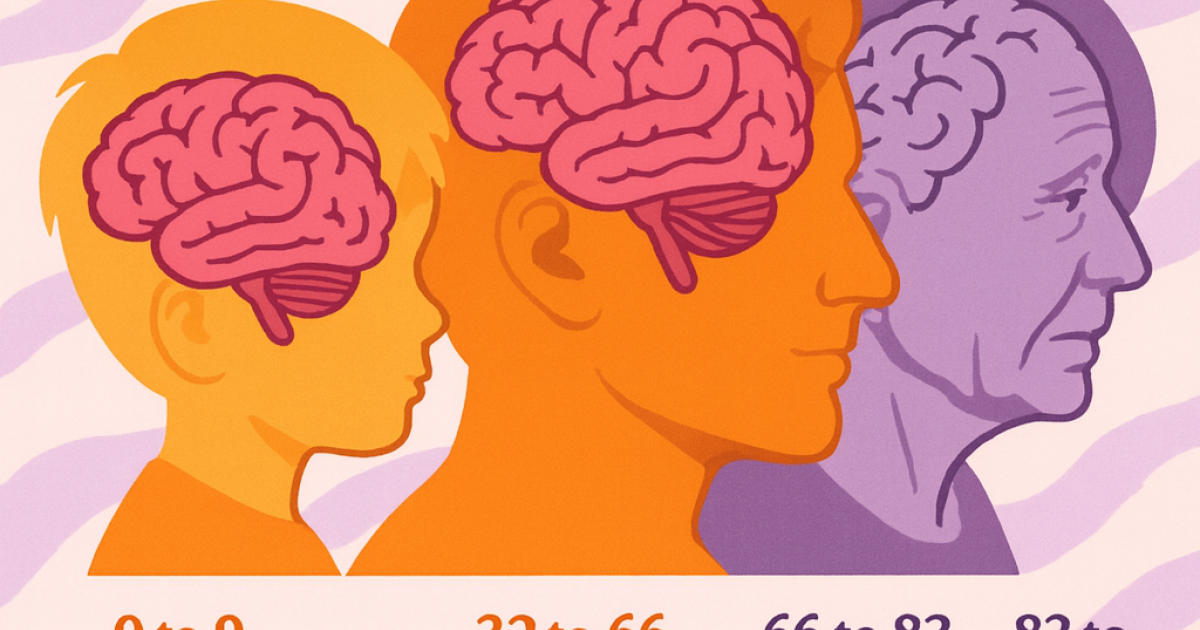 Across the lifespan, the brain’s structural organization does not change smoothly but instead moves through a series of distinct developmental epochs. These transitions correspond to meaningful shifts in how the brain balances global communication with local specialization, and they align closely with known stages of cognitive, emotional, and health-related change.