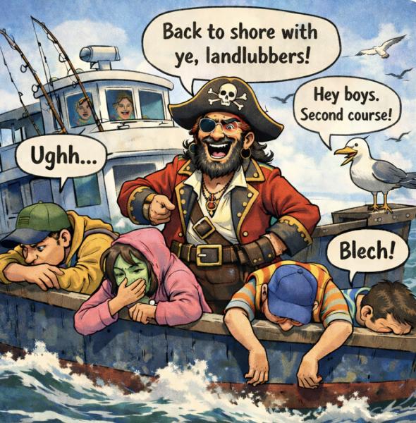 Hey, wanna be deep-sea fishermen and whale watchers? You know the type: you’d love to haul in a striper or gaze in awe at a pod of humpbacks—but you also know you’ll be chumming your breakfast over the side instead of a convenient bucket of fish guts.