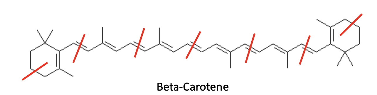 β-Carotene, another hydrocarbon, is the orange pigment that gives carrots, sweet potatoes, and pumpkins their color, and it’s one of the most common dietary carotenoids on Earth (Figure 4).